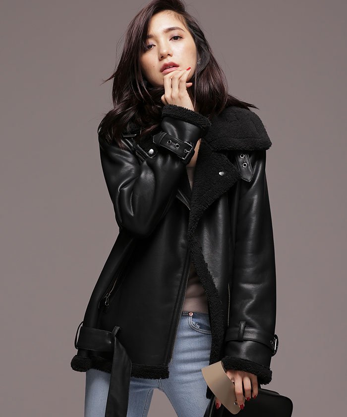ダブルライダースにフェイクムートンを合わせたシーズンライクなジャケット。ゆったりとしたメンズライクなシルエットを衿や袖口の切替が程よく和らげ、女性らしい着こなしへシフトしてくれます。裏地もボアを使用しているから防寒性も抜群。季節も柄のワンピースやブラウスに合わせたテイストミックスなスタイリングがオススメです。