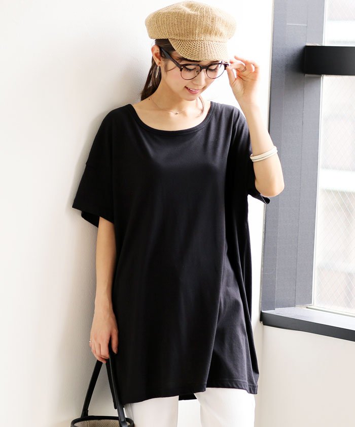 Tシャツ レディース 半袖 ビッグT ゆったり ロング丈 チュニック Uネック