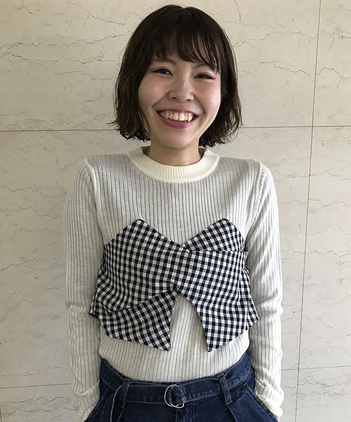 着易い細めピッチのリブニットにトレンドのギンガム柄ビスチェがレイヤードされたお得な一枚。伸縮性のない布帛のビスチェ部分は後ろリボンでサイズの調整ができ、ご自身のサイズ感に合わせることができます。主役級アイテムなので、シンプルにデニム合わせも◎。トレンドのチノ素材ボトムとのカジュアルコーデもオススメ♪