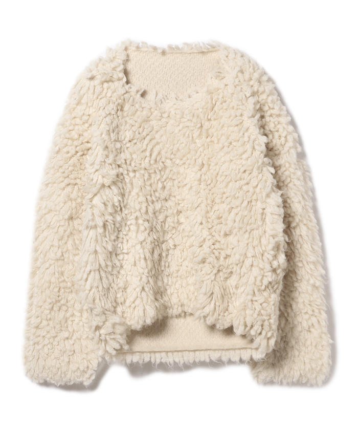 熟練した職人の技術によって完成したプルオーバーニット。一目ずつ大きなループを作り時間をかけて丁寧に編まれ、デザインだけでなく暖かさも兼ね備えます。 肩を落としたデザインと大胆なボリューム感で可愛さも倍増!ざっくりと背中を抜いて、女性らしくフェミニンに着こなすのがおすすめです。