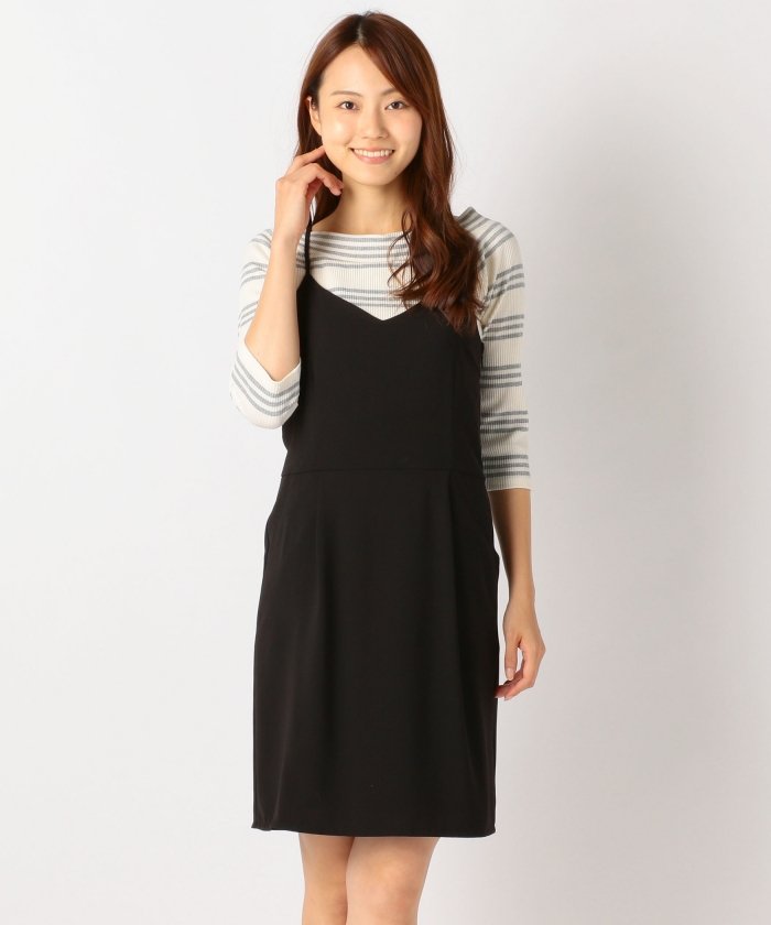 ボーダー×ジャンスカワンピース ミッシュマッシュ【MISCH MASCH】 広めのネックラインが女性らしさを引き立た、爽やかなボーター柄のトップスとジャンパー・・・ 546955-002035183♪ OUTLET PEAK (アウトレットピーク) レディース ワンピース スマホでも通販