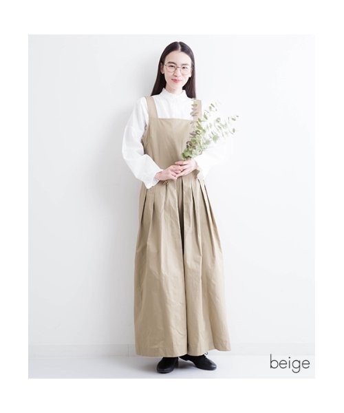 アースカラー 切替プリーツワイドサロペット