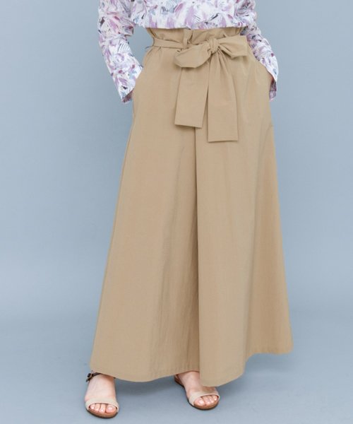 フロントを折り畳むように穿くと巻きスカートのような大人っぽいデザインに仕上がりますよ。トップスをインして、ハイウエストで合わせればスタイルアップ効果も期待できて◎軽やかな素材は、スプリングニットと好相性なので、これからの季節に手放せない1着になりそうですね。淡いカラーのアイテムを取り入れて、メリハリのある春コーデを楽しんでみて。