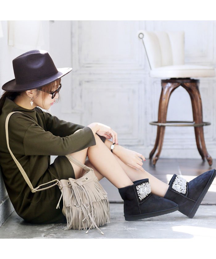 あったかファー!!冷え対策に♪ビジュー付ムートンブーツ/ブーツ